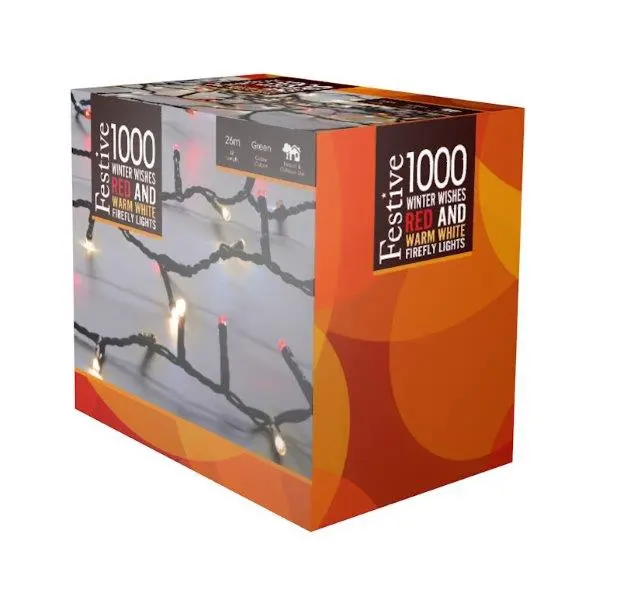 Embrace the magic of the season with the 1000 Firefly Lights in Winter Wishes colors. These lights create a dreamy and enchanting atmosphere, perfect for enhancing the beauty of your holiday decor. With an extensive length and easy installation, these lights are a versatile addition to your festive celebrations.