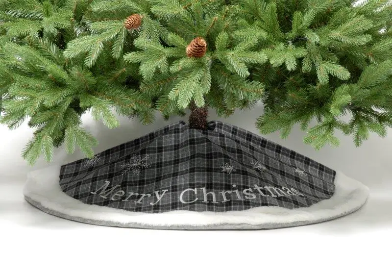 100cm Grey Tartan Merry Christmas Tree Skirt