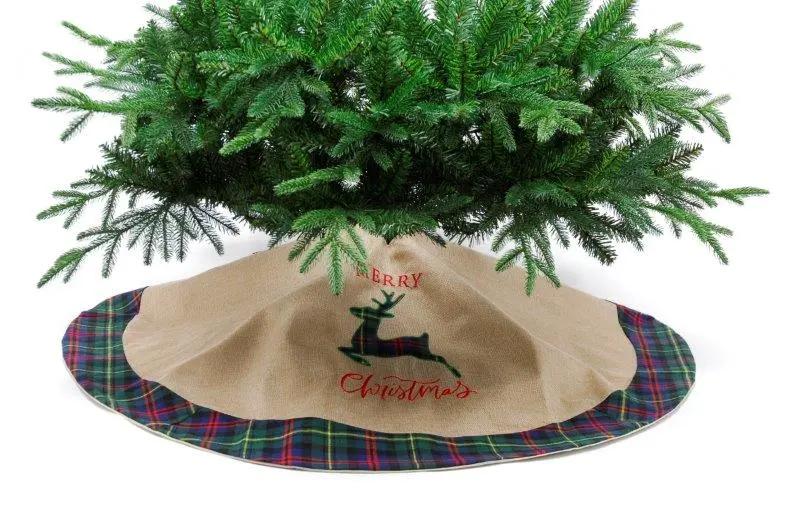 122cm Brown Hessian/Tartan Reindeer Tree Skirt