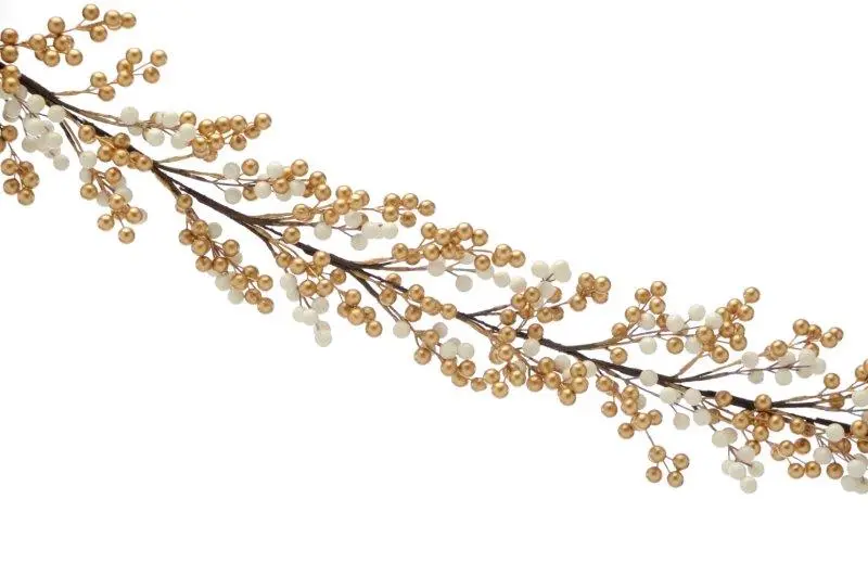 For the latest stock availability, please contact us or visit our store! Elevate your holiday decor with the 130cm Gold and White Cluster Berry Garland.