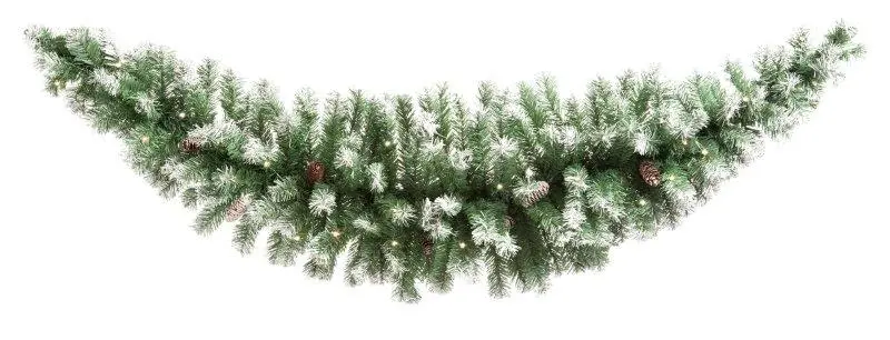 Elevate your holiday decor with the 180cm BO Lit Frosted Swag with Cones. This swag features frosted foliage and cones, creating a winter wonderland ambiance. With 60 warm white lights, it adds a touch of warmth and festive charm to your indoor or outdoor space.