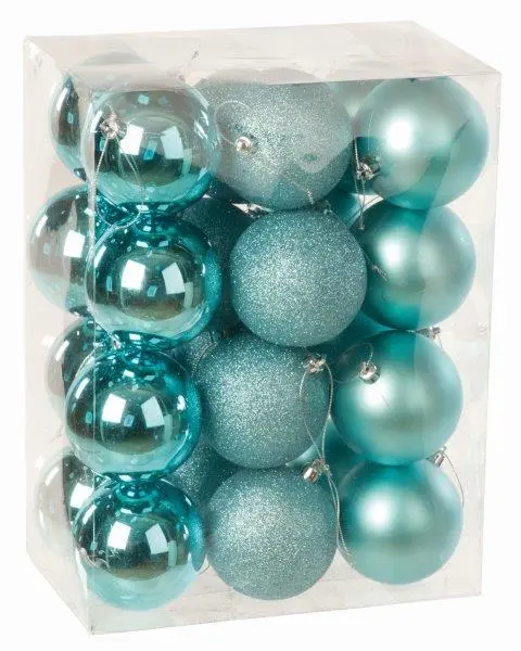 Enhance your holiday decor with the 24 x 8cm Shiny/Matt/Glitter Balls in Box in a beautiful blue hue. This set of balls offers a variety of finishes, including shiny, matte, and glitter, creating a dynamic and visually appealing display. Perfect for adorning your Christmas tree, wreaths, or other festive arrangements.
