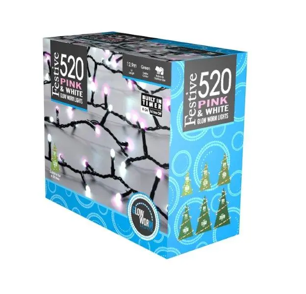 Add a touch of elegance to your holiday decor with the 520 Glow-Worm Lights in Pink and White. These lights feature a delicate color combination, creating a sophisticated and charming ambiance. With a generous length, they are perfect for both indoor and outdoor use, allowing you to celebrate the season with grace.