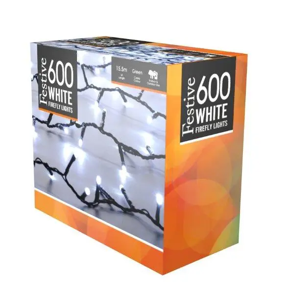 Illuminate your space with the 600 Firefly Lights in White. These lights feature delicate firefly bulbs, creating a serene and enchanting ambiance. With an extensive length and easy installation, these lights offer versatility for decorating both indoor and outdoor spaces during the festive season.