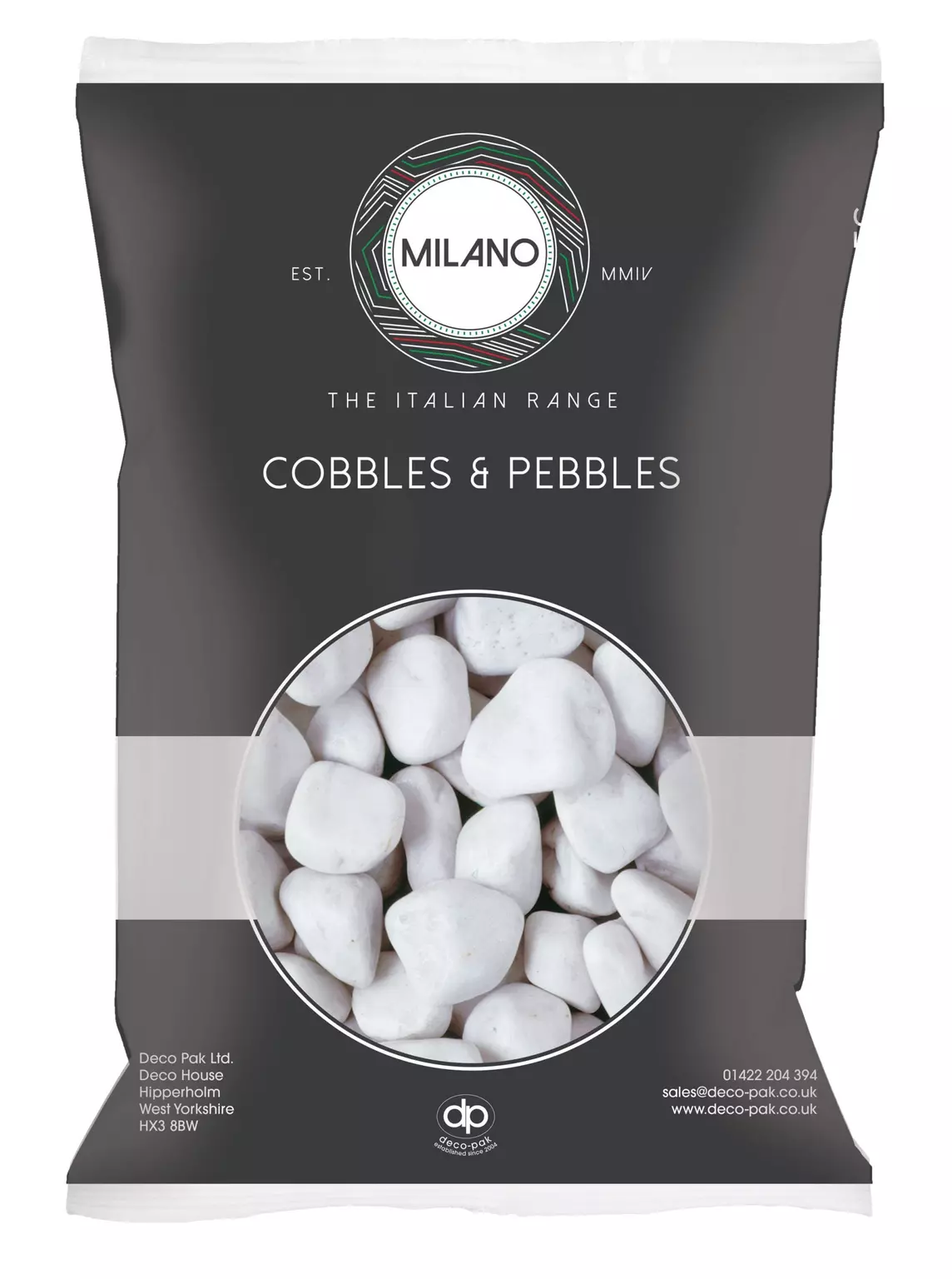 You can buy the Deco Pak Milano White Cobbles online in our webshop or visit our in Wolverhampton, near Walsall, Birmingham, Dudley and Stafford, to buy the Deco Pak Milano White Cobbles or other Decorative Stone and Gravel products. Our garden centre is conveniently located, has free parking and is easy to visit from places like Walsall, Birmingham, Dudley and Stafford. Feel free to visit us to buy Decorative Stone and Gravel products.