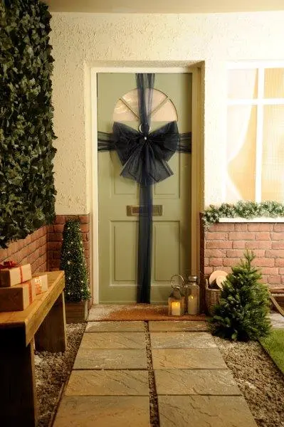 Add a touch of elegance to your door with the Door Bow Kit in a sophisticated navy blue. This kit includes a pre-made bow, making it a quick and stylish addition to your holiday decor. Whether celebrating special occasions or welcoming guests, this door bow enhances the festive ambiance.