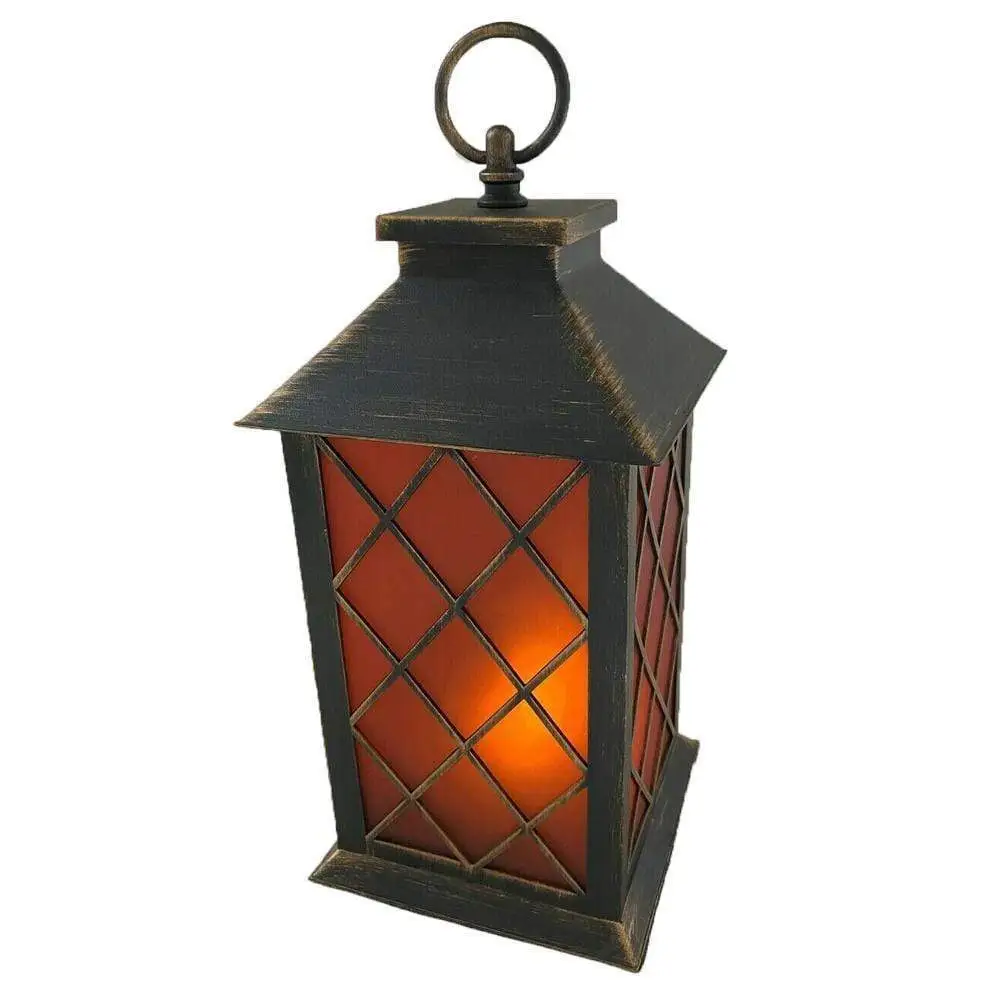 Christmas Lantern With a realistic flame effect, this Christmas lantern from Festive will surely bring one warm glow to this chilly time of year. In black with a lattice effect over the sides, this decorative delight looks as great on a table as hanging from its hook. The timer will take over and keep your abode well lit, whether you are in or not, making this Christmas lantern one to guide that sleigh in nicely. Features: