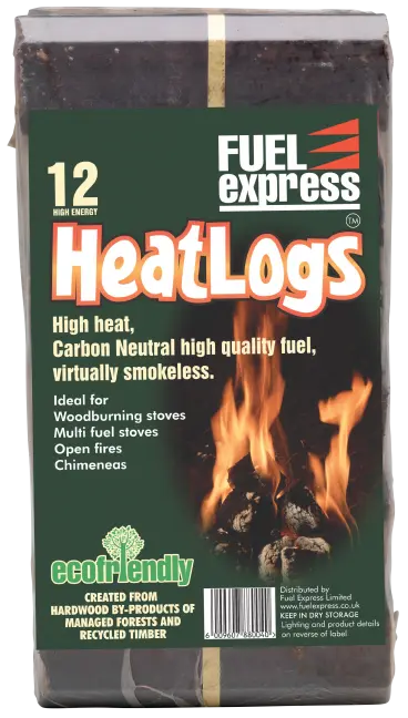 Heatlogs are a by-product of the sawmill industry consisting of nothing more than sawdust, which has been dried then compacted under high pressure and heat. During this process Lignin (a natural component of wood) is produced in liquid form and when cooled solidifies, binding the wood together in its new form with no need for adhesives or chemicals to be added.