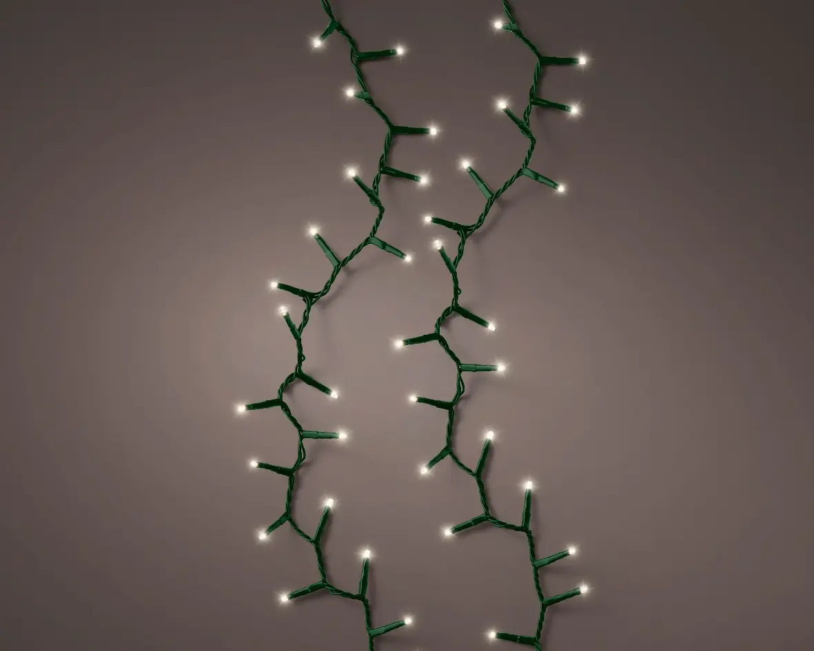 Add a sleek, modern glow to your festive displays with Lumineo 1000 Compact Lights. Featuring 1000 cool white LEDs on a green wire, these lights provide a bright, crisp ambiance, perfect for decorating medium-sized trees, garlands, and outdoor spaces. The green wire blends naturally with foliage, making them suitable for both indoor and outdoor use.