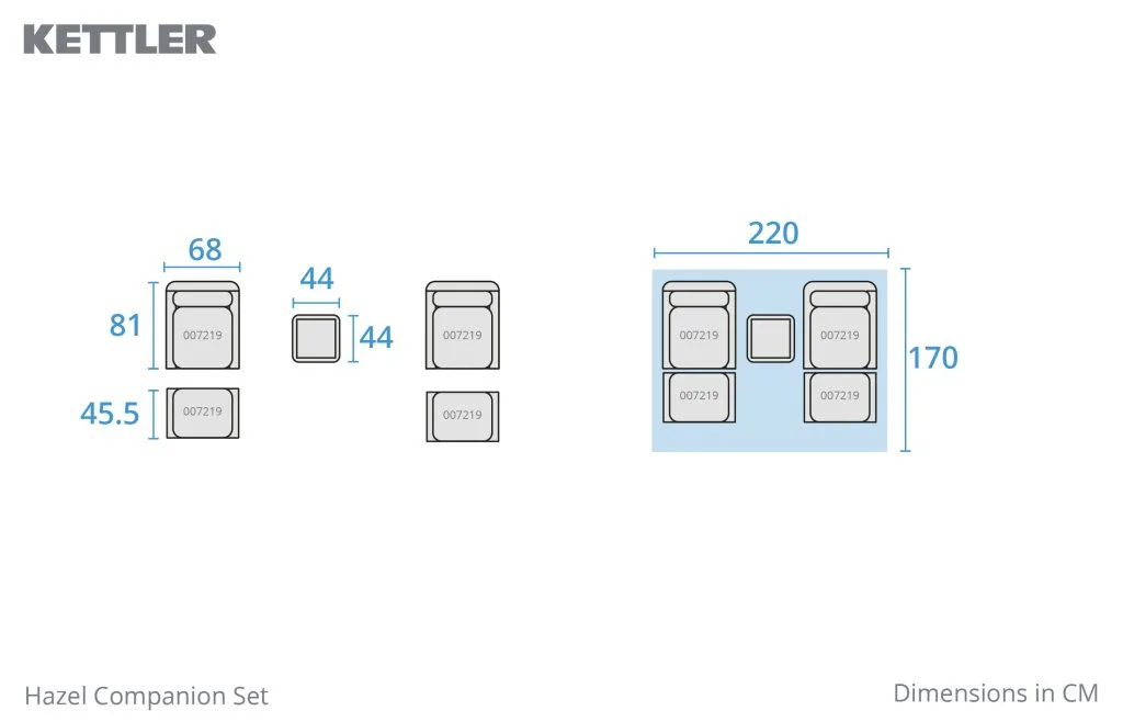 Deep RainSafe® weatherproof cushions with supportive foam cores and double piping deliver lasting comfort and dry quickly after showers. Designed to be left outdoors year-round (excluding cushions), the Hazel Companion Set adds warmth, relaxation, and effortless style, with matching Hazel sets and protective covers also available.
