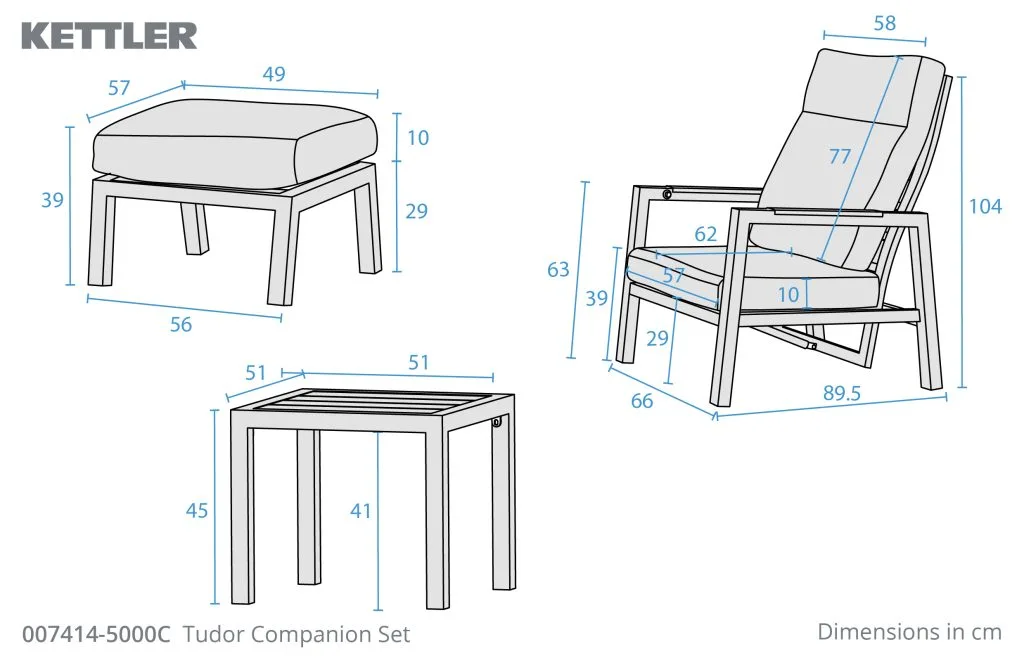 You can buy the Kettler Tudor Companion Set online in our webshop or visit our in Wolverhampton, near Walsall, Birmingham, Dudley and Stafford, to buy the Kettler Tudor Companion Set or other Reclining Chairs products. Our garden centre is conveniently located, has free parking and is easy to visit from places like Walsall, Birmingham, Dudley and Stafford. Feel free to visit us to buy Reclining Chairs products.