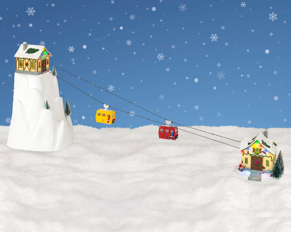 - Intricate village design with beautifully detailed cable cars and Christmas decorations