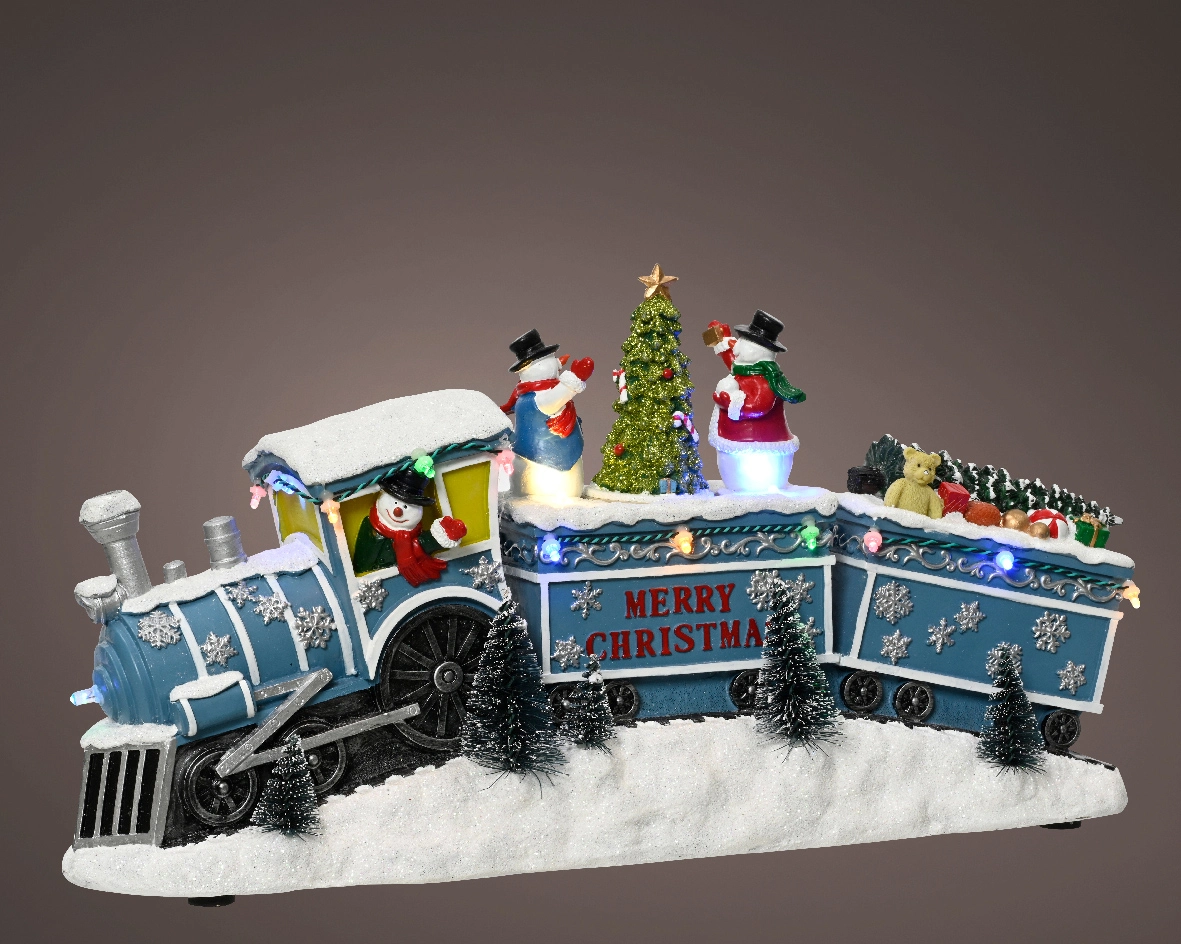- Snowman train scene with animated features, capturing the excitement of Christmas