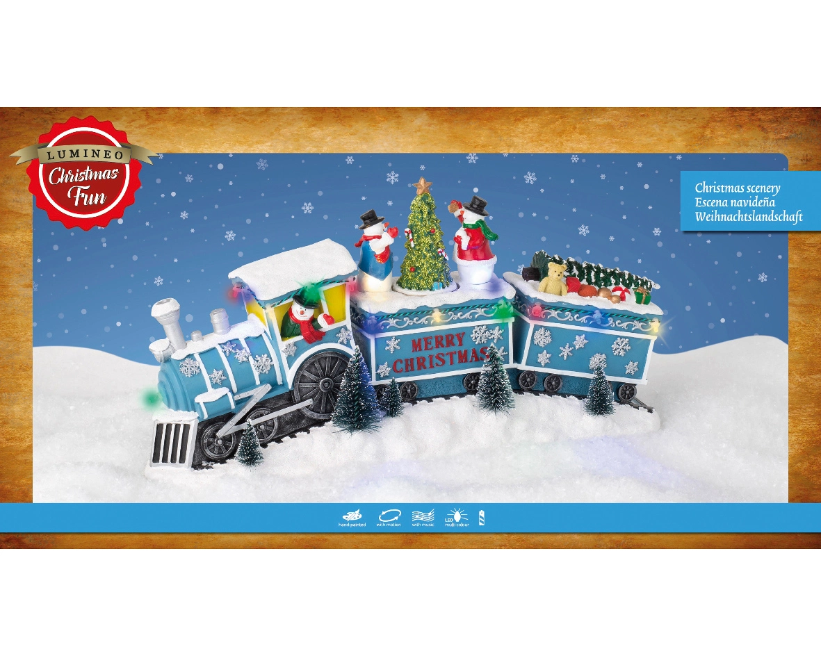 Lumineo Village Snowman Train Scene - Multi LED (Battery Operated)